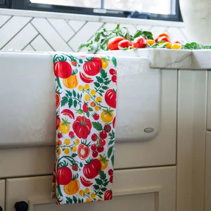Introducing our Tomato Vine Dish Towel, a summer kitchen essential! Crafted from soft, absorbent fabric, it captures the essence of ripe tomatoes straight from the vine. Perfect for drying dishes or adding seasonal freshness to your decor, it's ideal for gifting to those who love cooking or are farming and gardening enthusiasts. Gift it to your favorite chef or gardener for a touch of rustic charm.